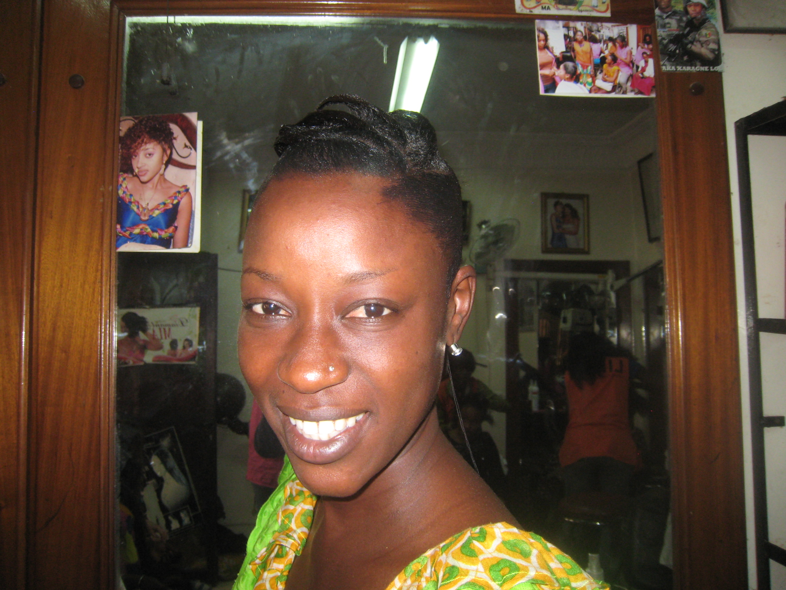 Ami at the salon, hair started, no make-up yet