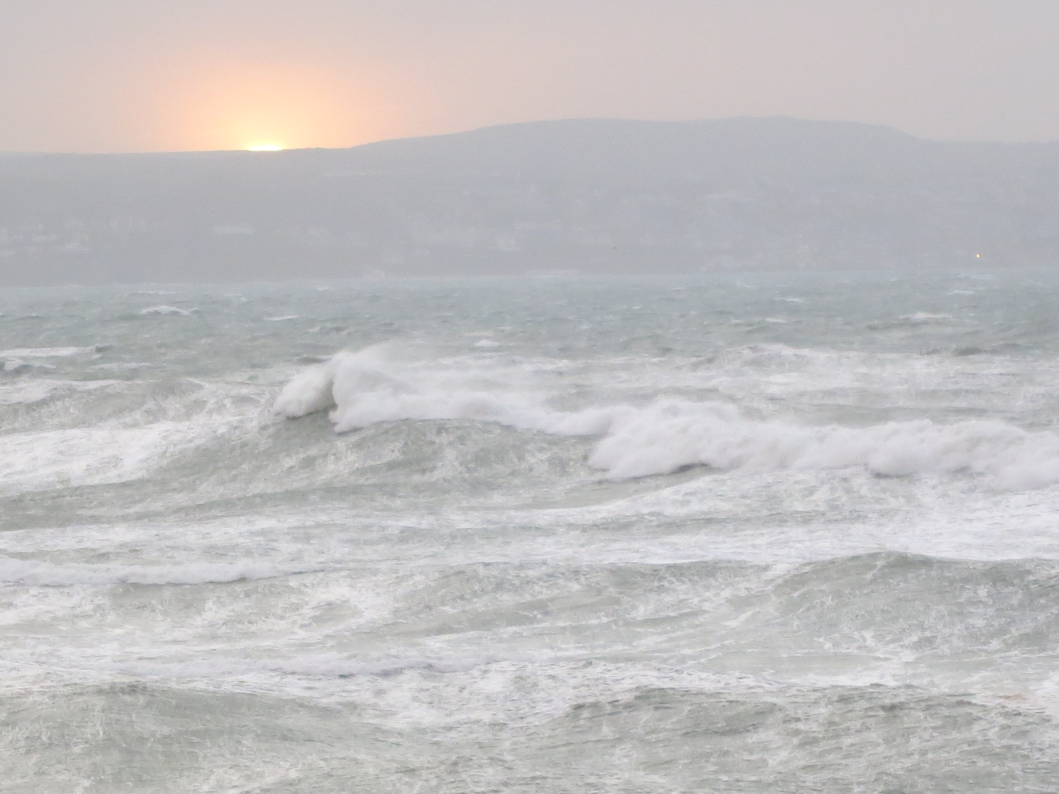 Sunset over swelling waves looking towards St Ives