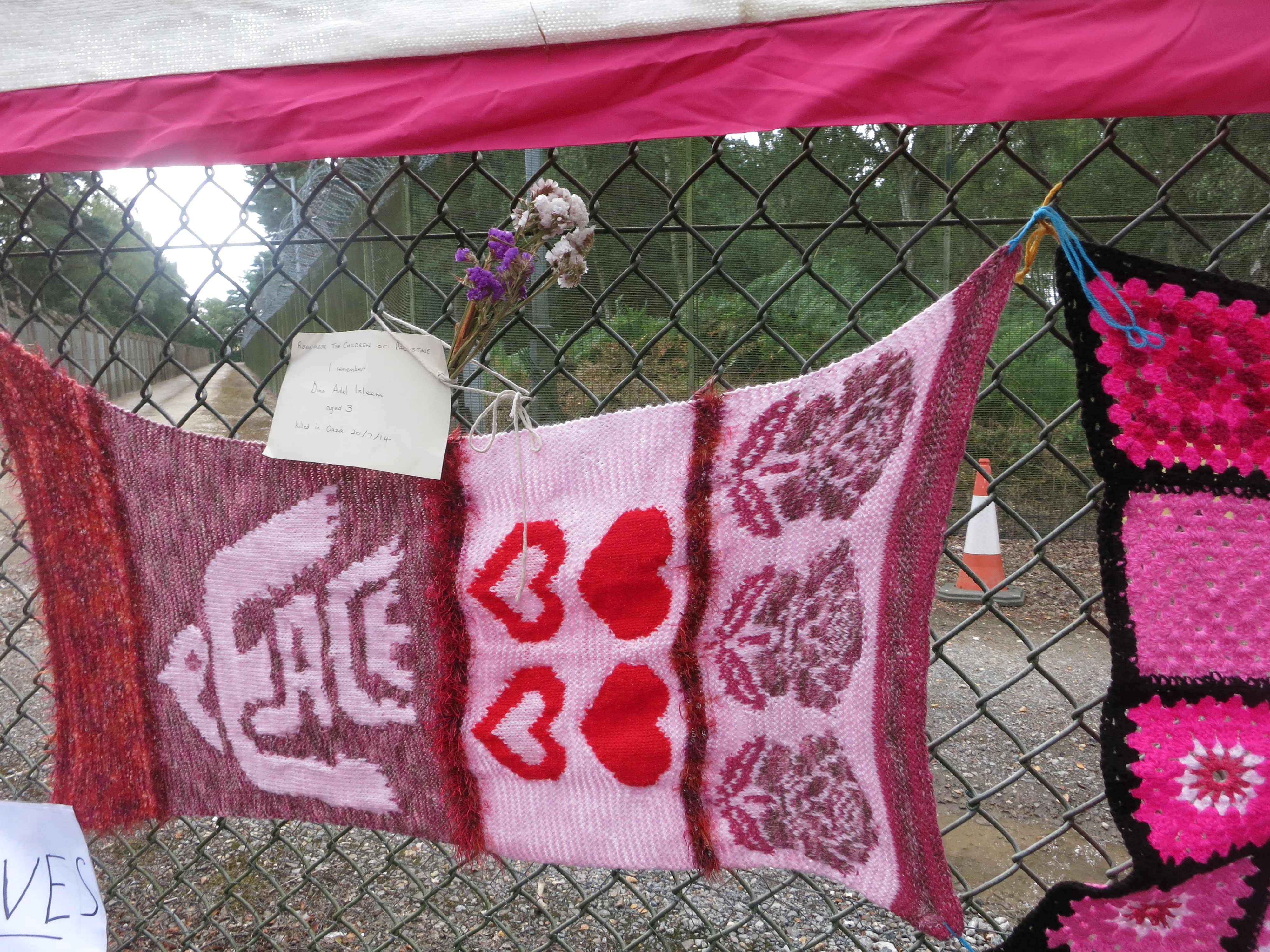 My flowers for Dina Adel Isleem, left on the fence around Aldermaston where they make nuclear weapons