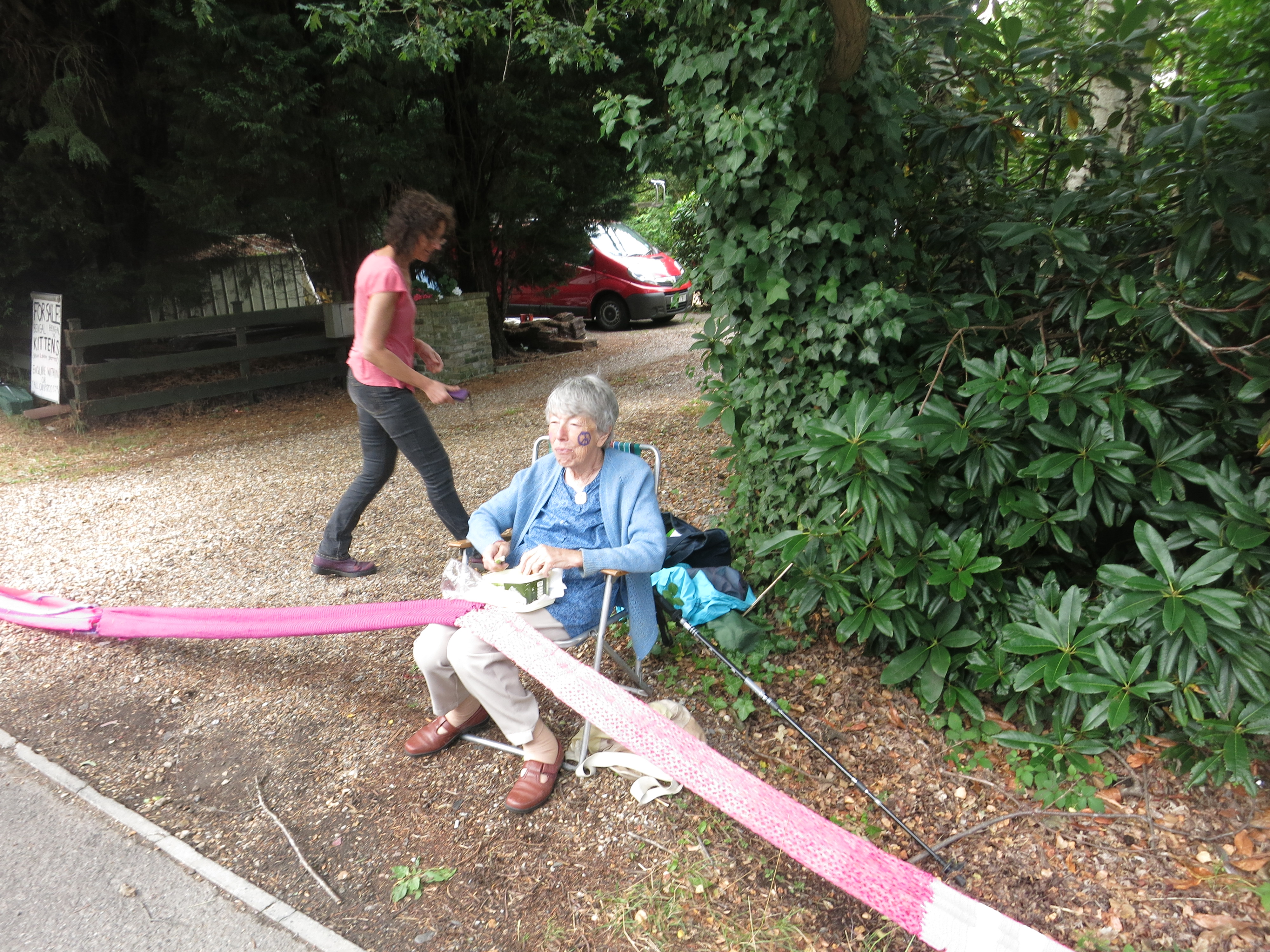 Taking a break before the holding up of the scarf at 1pm