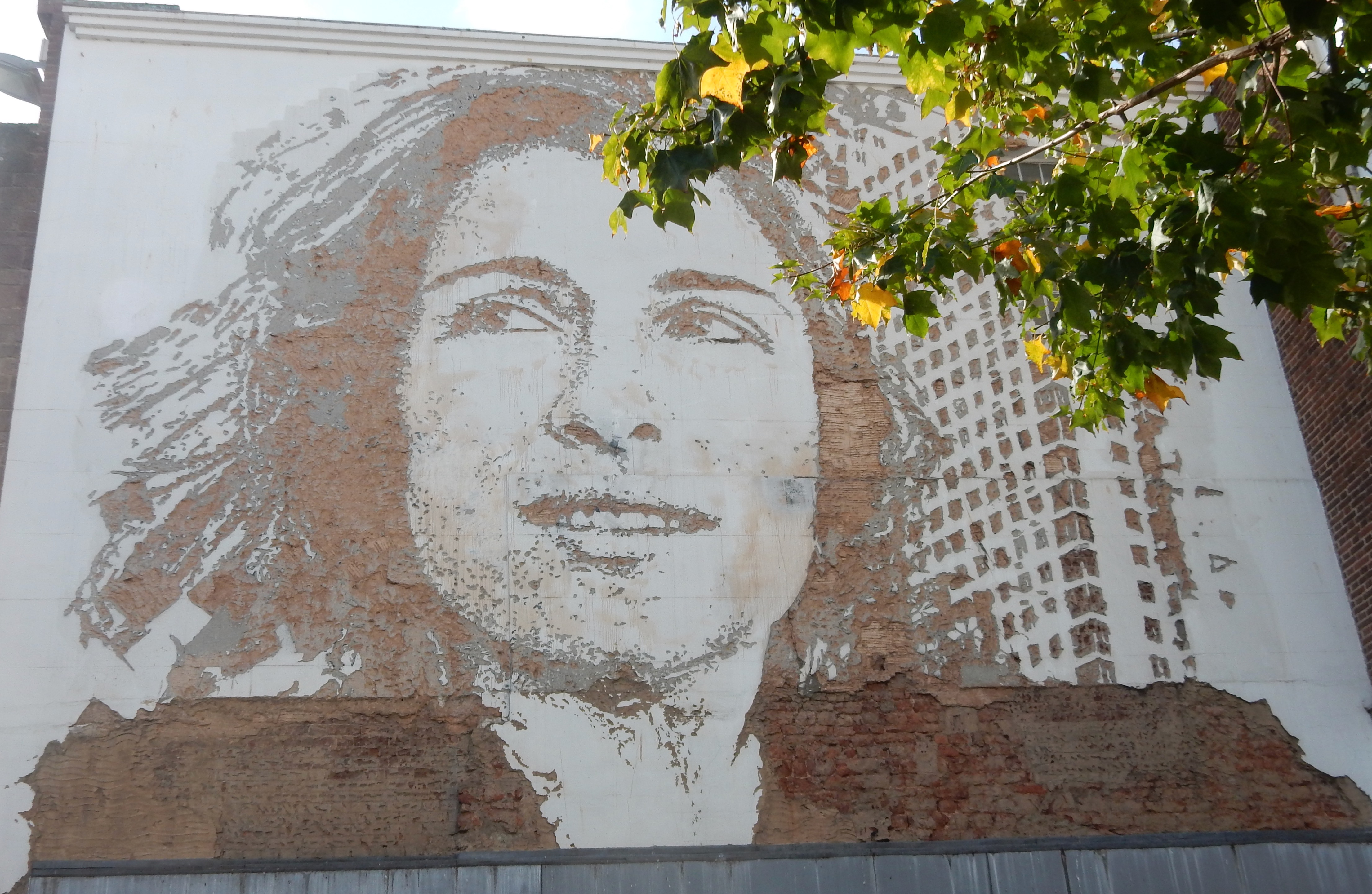 Love this! Look closely, all chipped out of the white facade. Wish I knew the artist.