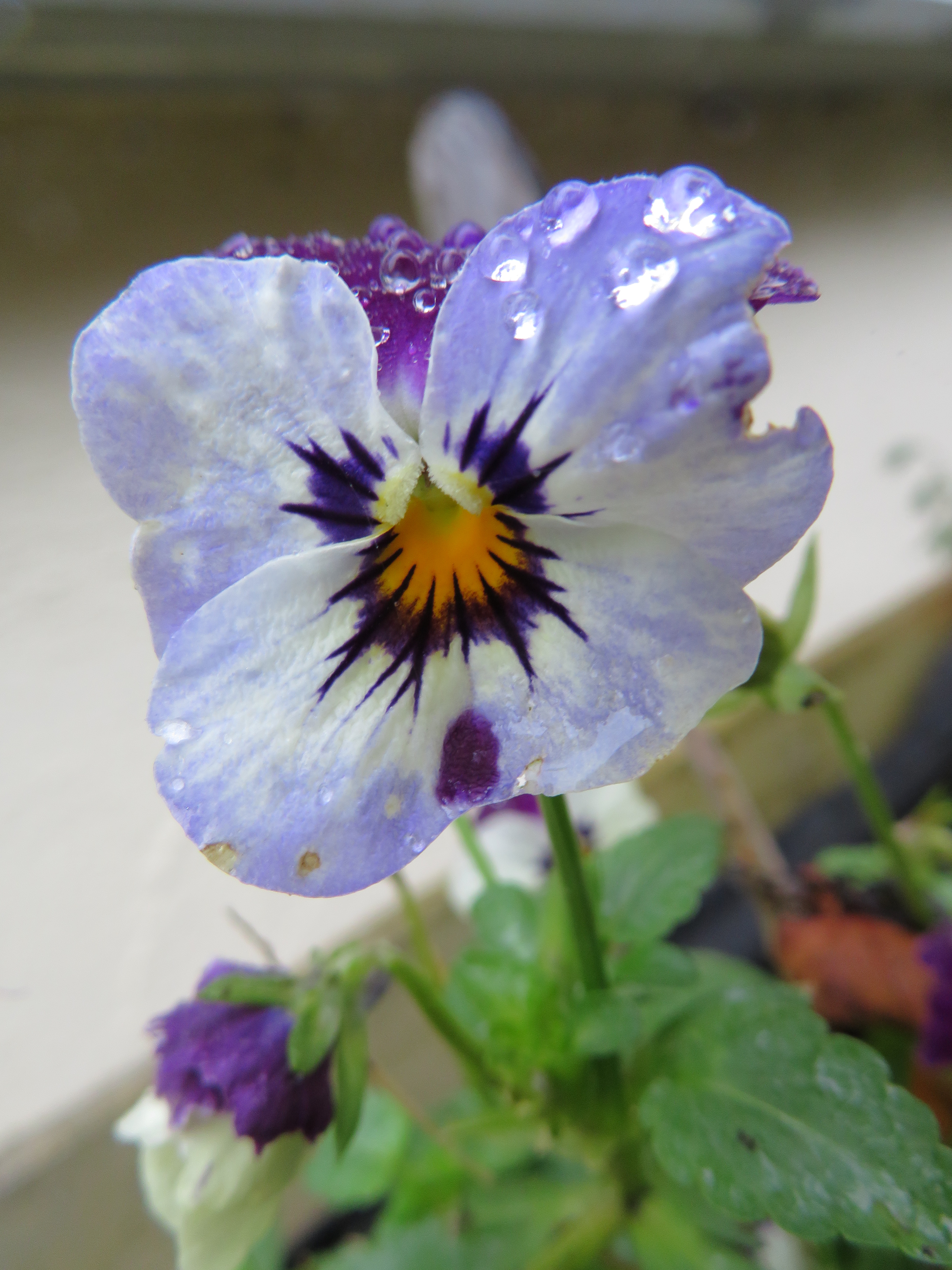 Pansy with raindrops
