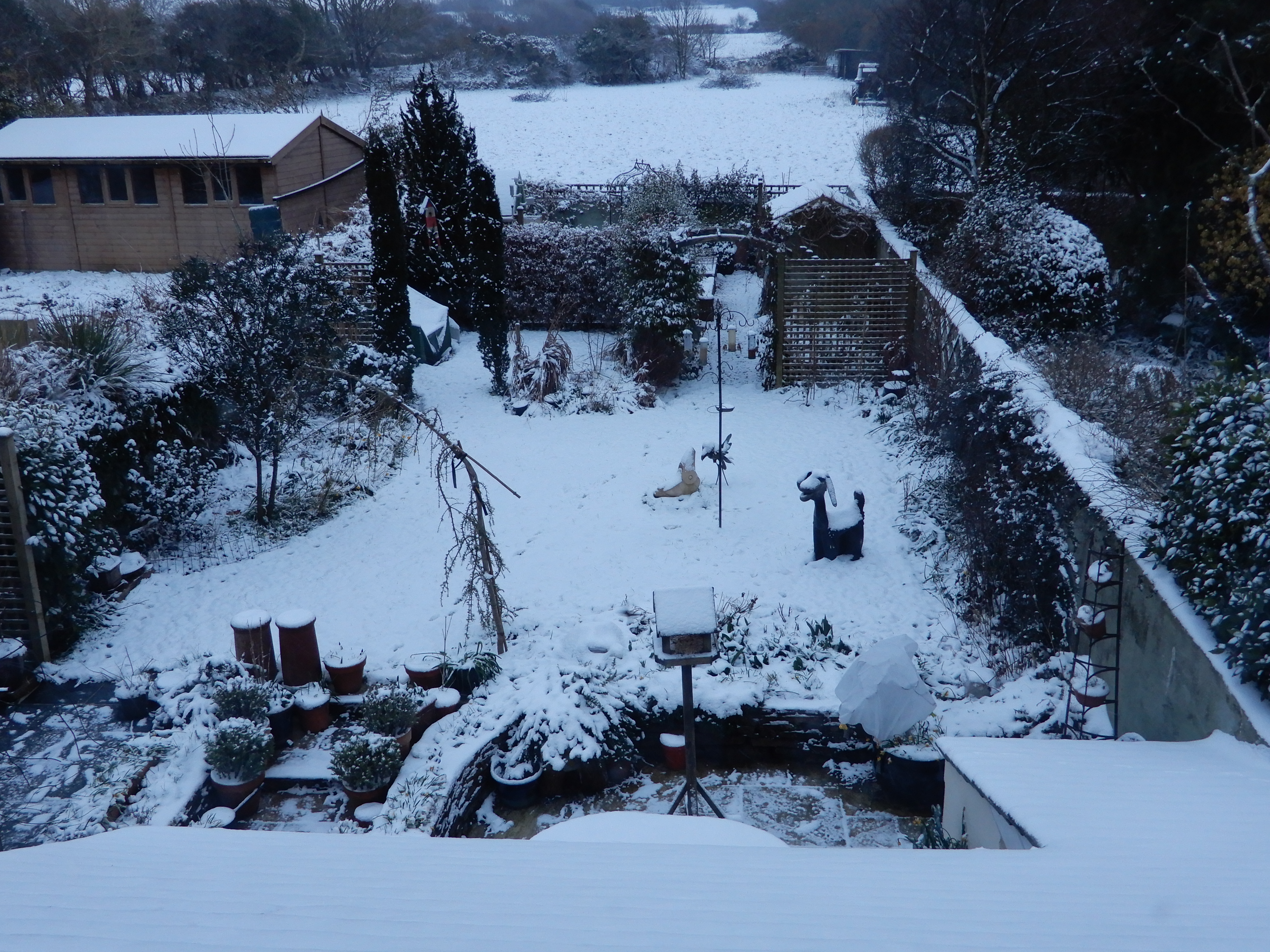 Early morning snow covered back garden