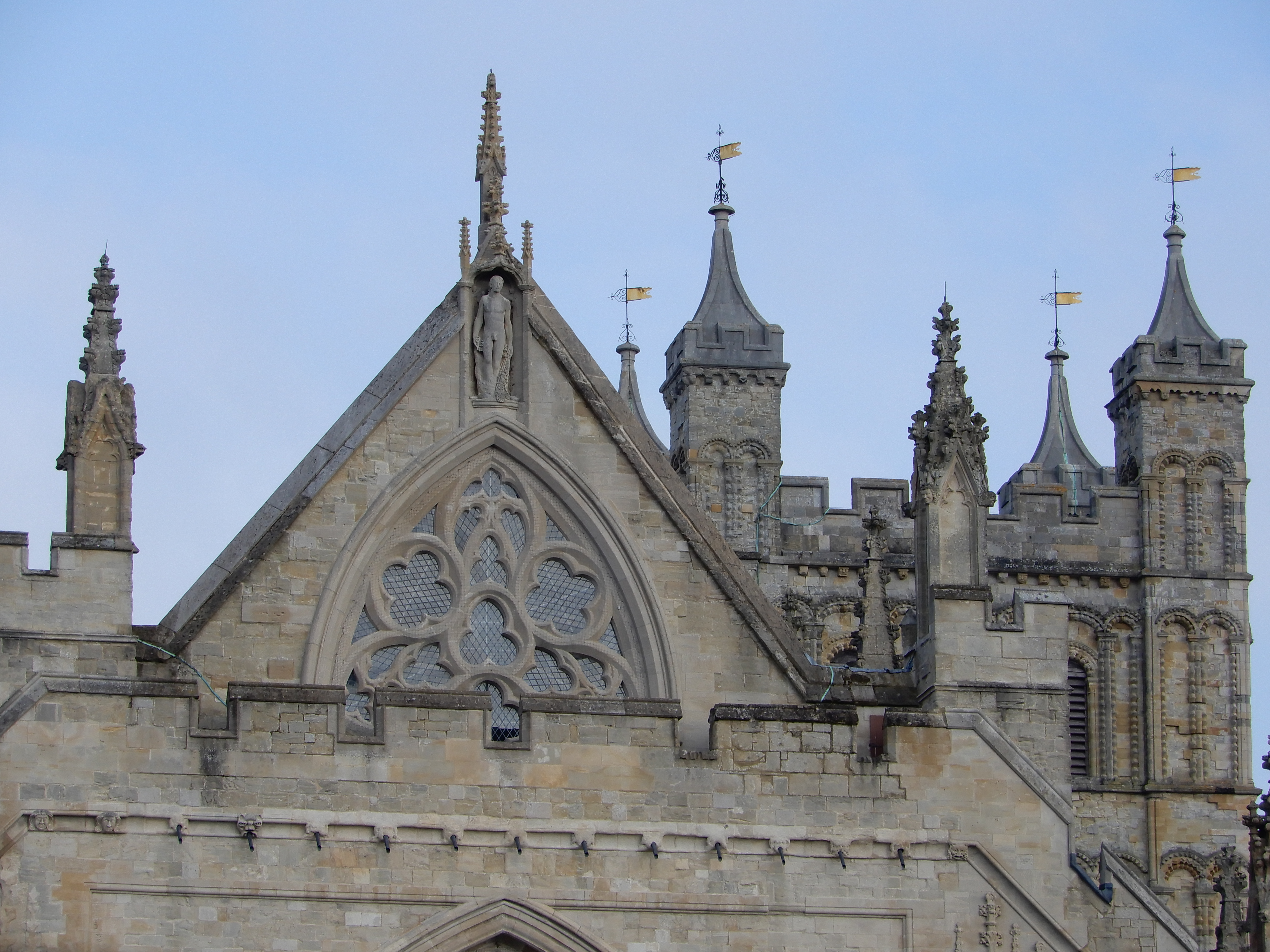 Golden pennants on Exeter Cathedral