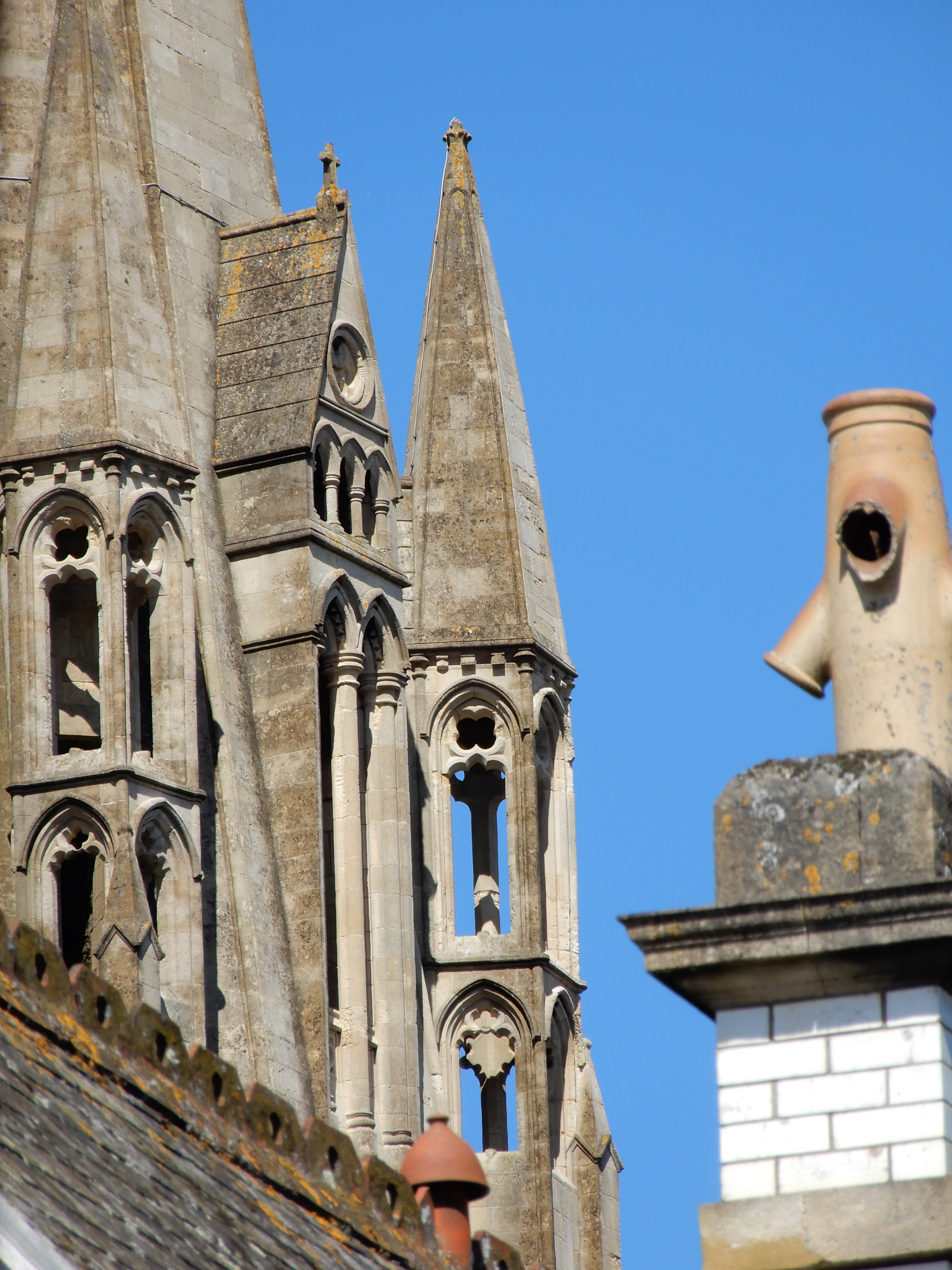 Turrets and a chimney
