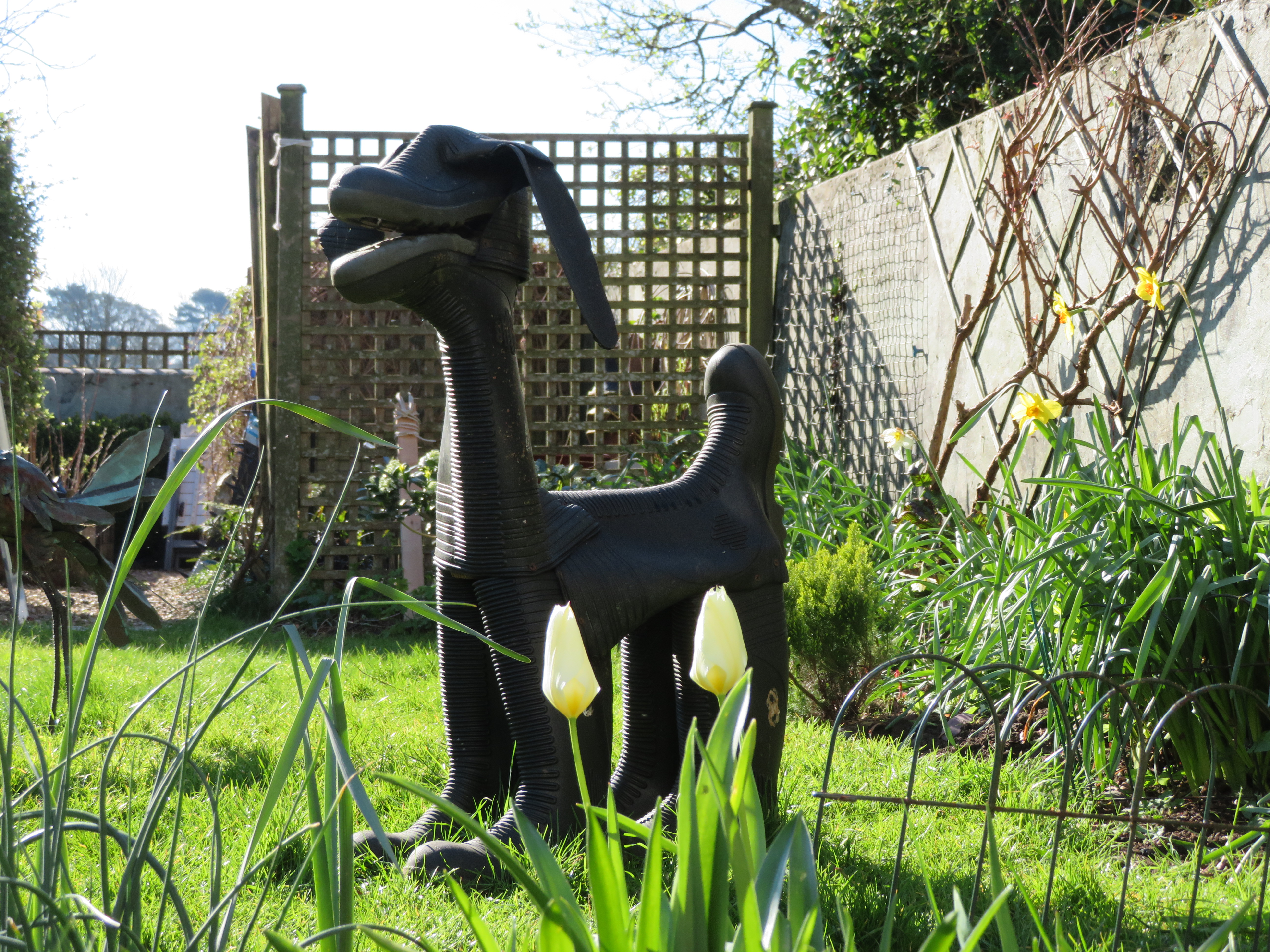 Closed tulips and Welly Dog