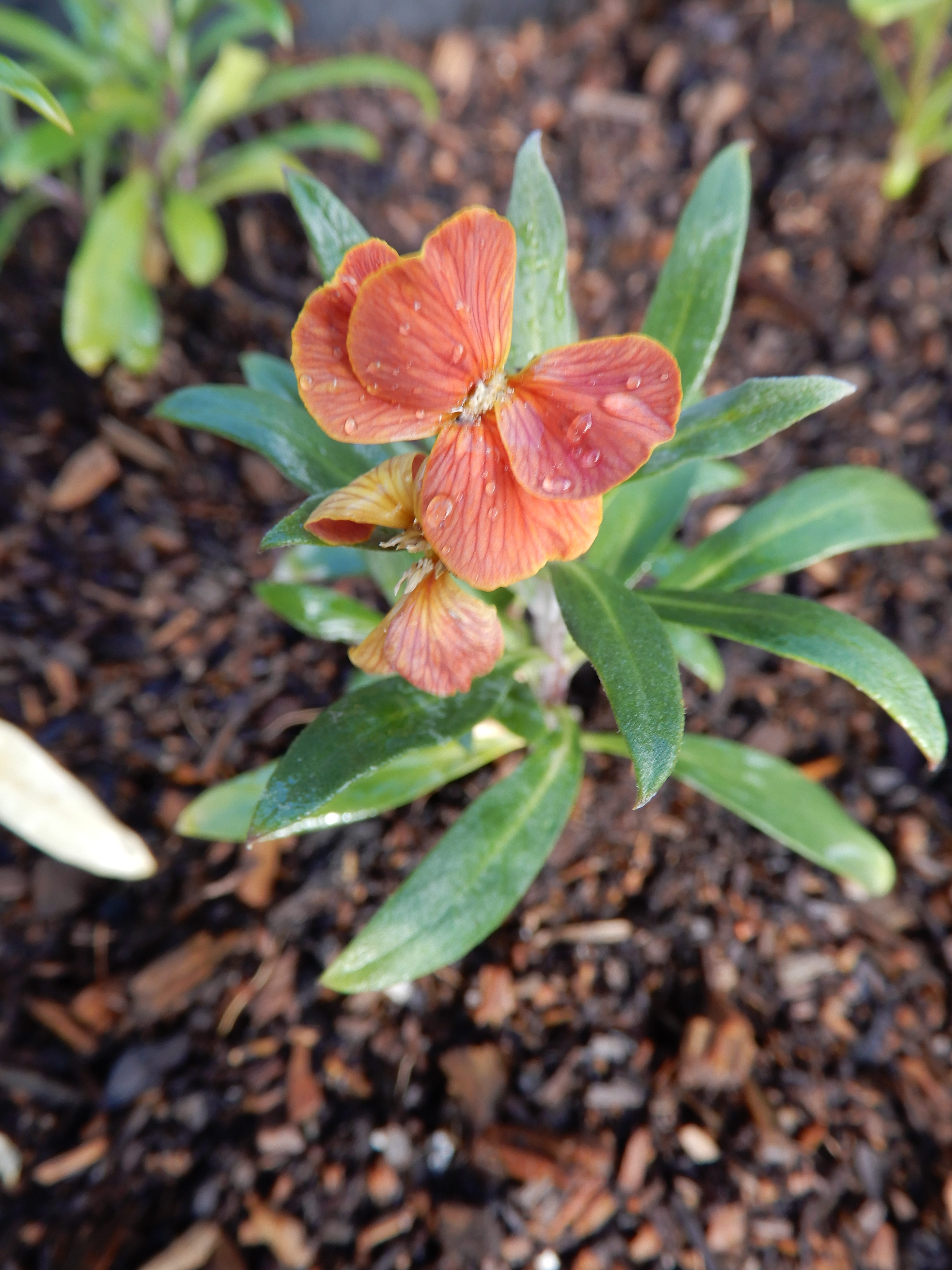 First wallflower in a tub by the front door