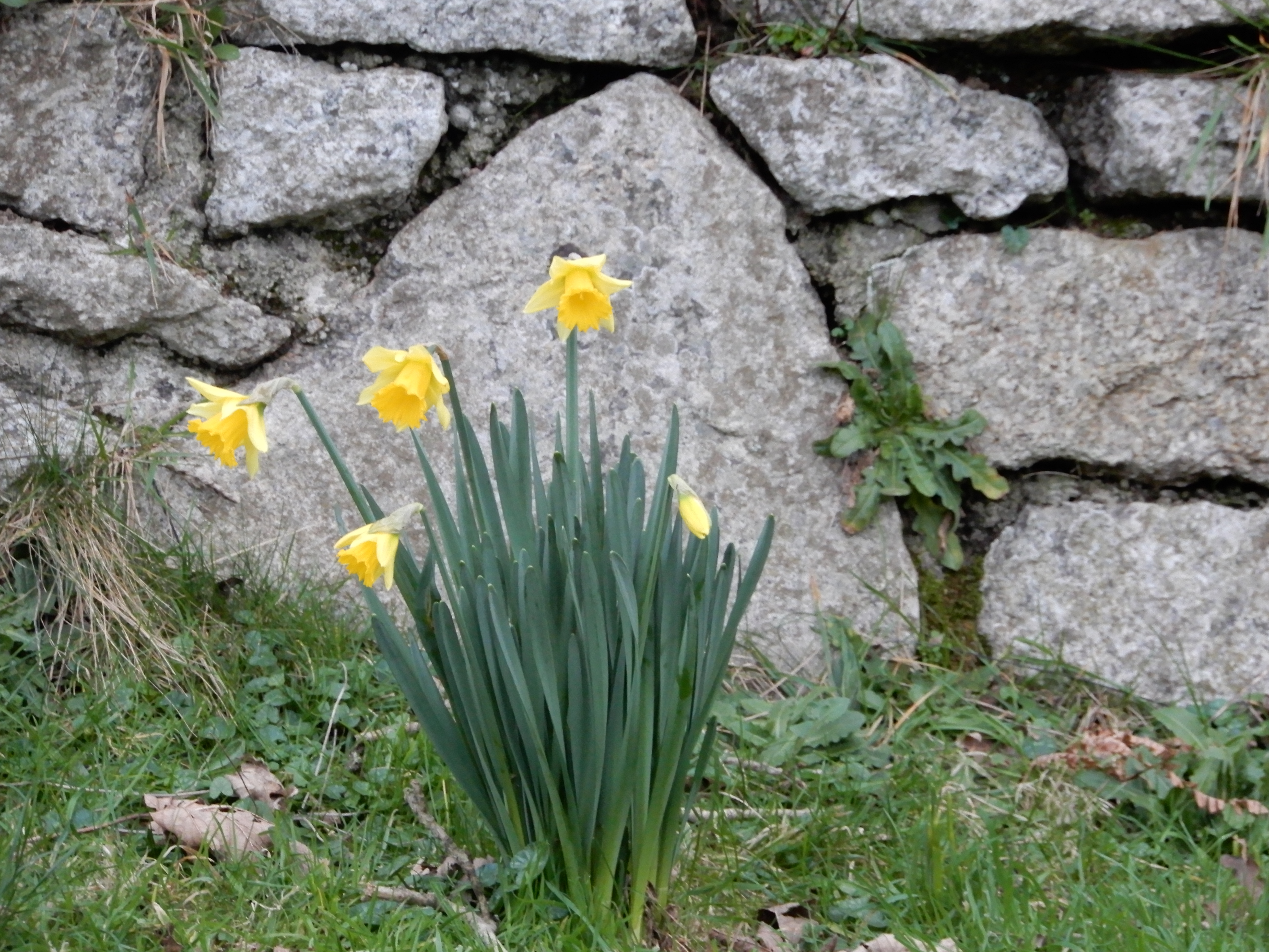 Daffodils flowering on the verge on the last part of our walk