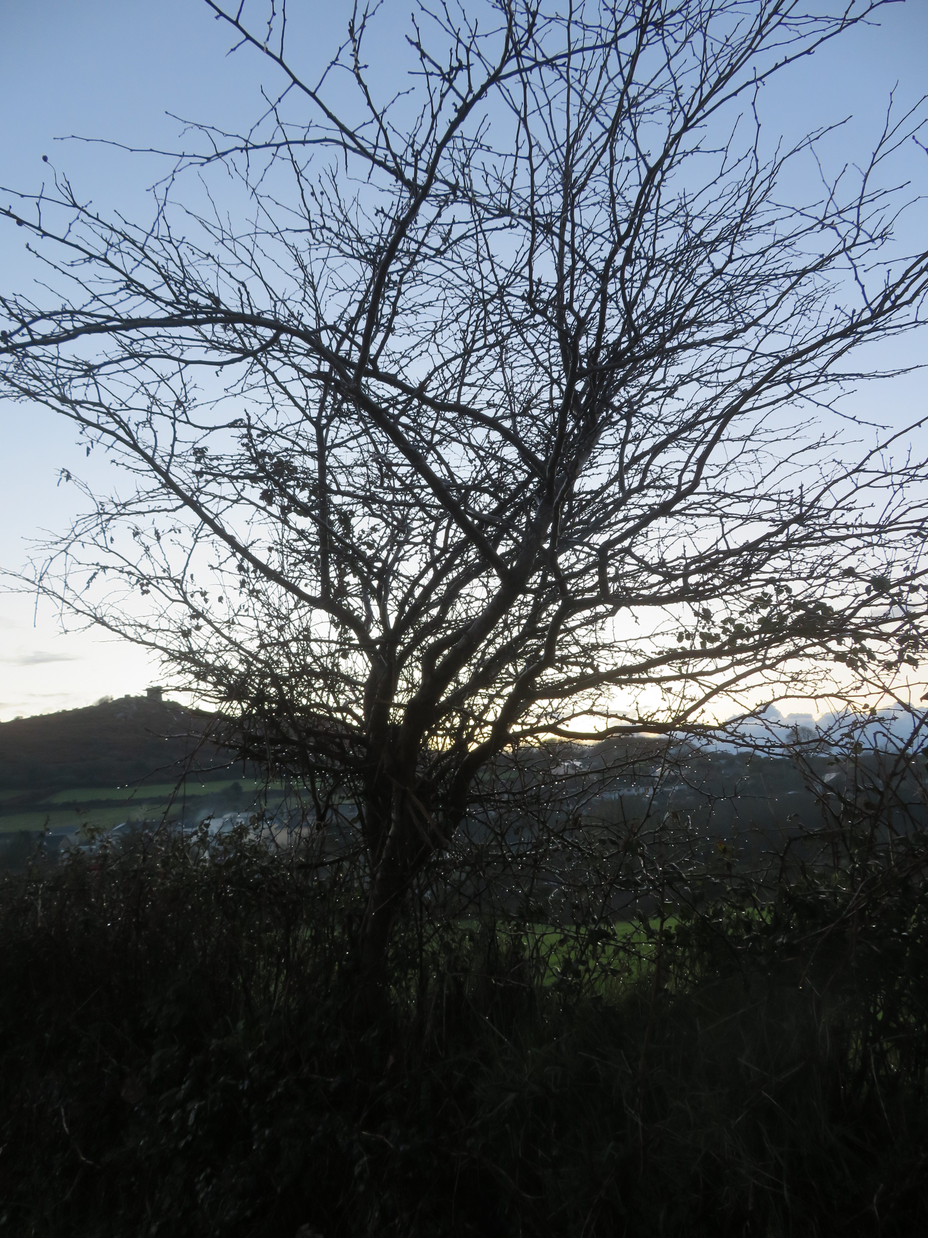 Winter tree with Carn Brea Castle in the far distance . Photo by Mr S